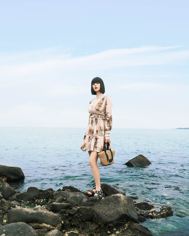 细腻的手绘花卉图案,是让飘逸柔美洋装增添更多精緻感的重点,搭配上充满夏日度假感的藤编包,以及舒适能修饰腿部线条的皮革厚底鞋,不仅呈现出自然清新的惬意氛围,更彰显了都会女子优雅与不羁并存的别致风情,型塑出从容鬆弛优雅自信之美。